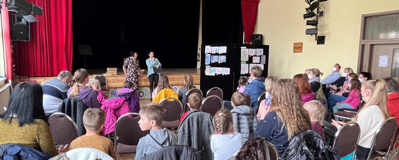 Vyhodnotenie najkrajších detských prác ku knižnej súťaži Deti - deťom. Beseda so spisovateľkou a veselé dramatizované čítanie s pánom Mrkvičkom. Centrum kultúry Lozorno, 3.4.2022. Foto: B. Hurajová