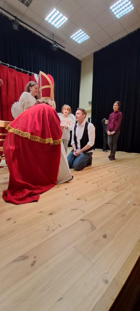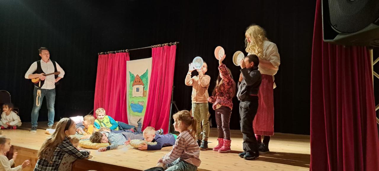 Rozprávková nedeľa spojená s Mikulášom. Predstavenie divadla Trubadúri: O Snehulienke. Po ňom prišiel medzi deti Mikuláš. Centrum kultúry Lozorno, 3. december 2023. Foto: B. Hurajová