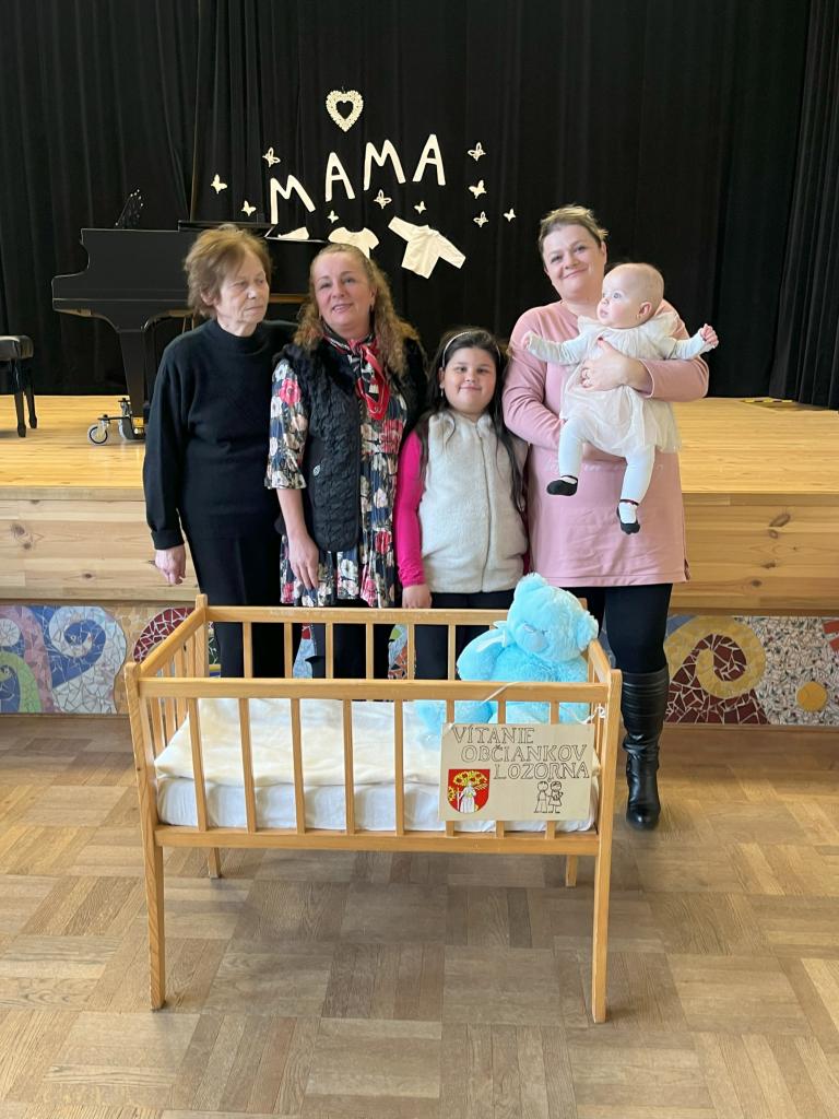 Podujatie "Uvítanie detí do života", pre deti, ktoré sa narodili v roku 2023, majú trvalý pobyt v Lozorne a rodičia ich na toto podujatie prihlásili. Centrum kultúry Lozorno, 17. marec 2024. Foto: B. Hurajová. (Pozn.: rodiny súhlasili so zverejnením fotografií.)